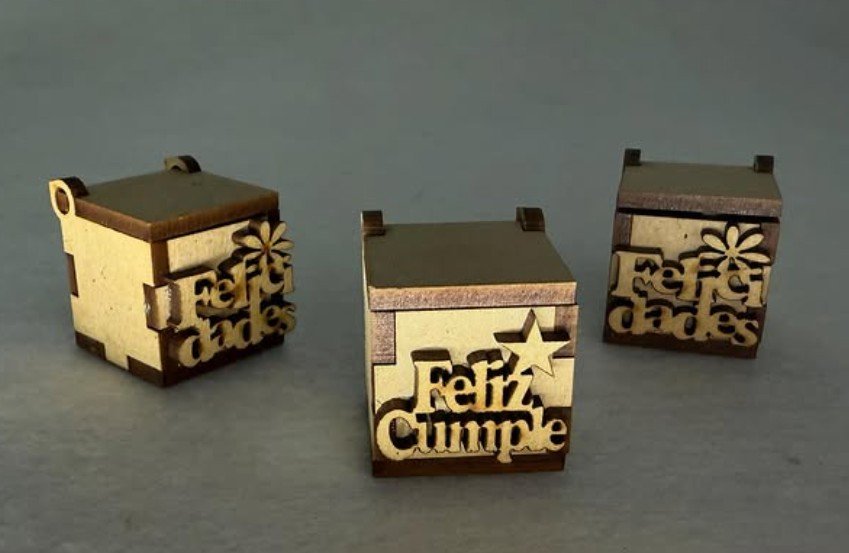 Caja alhajero chica en tonos de madera natural con posibilidad de personalizar el mensaje.