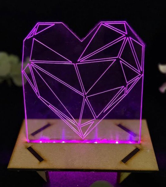 Adorno de acrílico grabado en láser qué al ponerlo en una base de luz, esta se prende y genera mejor energía para todos en la habitación.